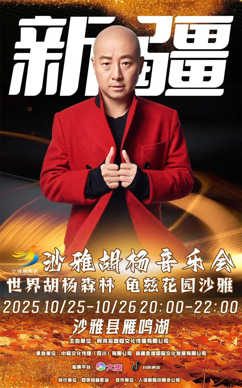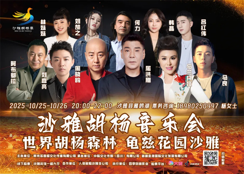 当塔克拉玛干的风沙掠过千年胡杨,当雁鸣湖的落日把湖面染成鎏金,2025年最具秋日氛围感的音乐盛宴——沙雅县胡杨音乐会,即将于10月25日至26日在这片诗意之地开唱!