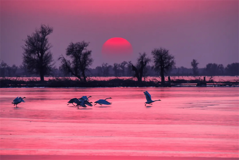 从雁鸣湖出发,驱车即可抵达塔里木河沙雅段。傍晚时分,站在河边看落日余晖洒在河面上,波光粼粼间仿佛能看见千年岁月的流转,适合结束一天的音乐狂欢后,来这里享受片刻的宁静。