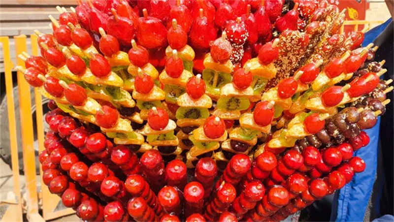 “冰糖葫芦哎——”这熟悉的吆喝声,是塔河冬日街头最动听的音符。火红的山楂、花红,绿色的葡萄、猕猴桃,黄色的橘子、香蕉......各式各样的水果,裹着晶莹剔透的糖衣,一串串插在草靶子上,像极了一件件艺术品。