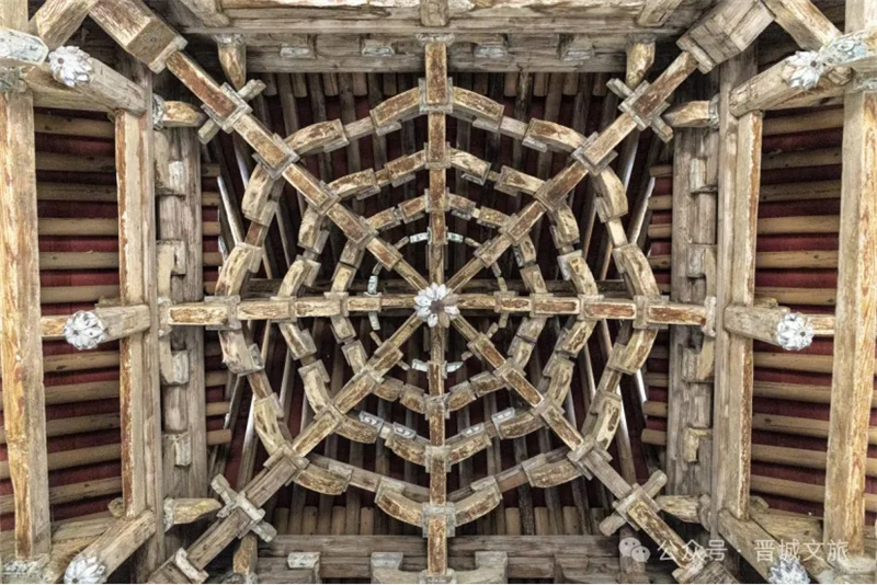 晋城市高平市神农镇中庙村炎帝古中庙元代无梁殿木质藻井。王剑 摄