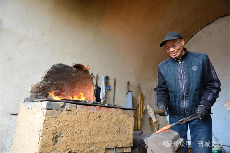 晋城市泽州县大阳古镇,村民向游客展示传统冶铁技术。陈斌 摄