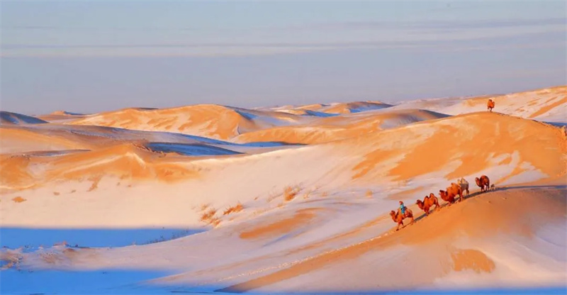 冬天的巴丹吉林沙漠太绝了!雪覆沙丘,勾勒出苍茫画卷,那种辽阔感直接治愈所有emo,站在沙漠里,感觉自己超渺小又超自由!