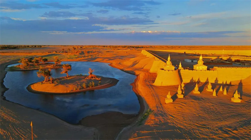 通湖草原旅游区(4A)→阿拉善盟贺兰山生态旅游区(广宗寺)(4A)→阿拉善博物馆(3A)→阿拉善左旗定远营古城旅游区(4A)→曼德拉山岩画景区(2A)→巴丹吉林沙漠景区(4A)→额日布盖峡谷旅游区(2A)→东风航天城(4A)→黑城•弱水胡杨风景区(4A)→居延海景区(4A)→策克口岸国际文化旅游区(4A)→返程