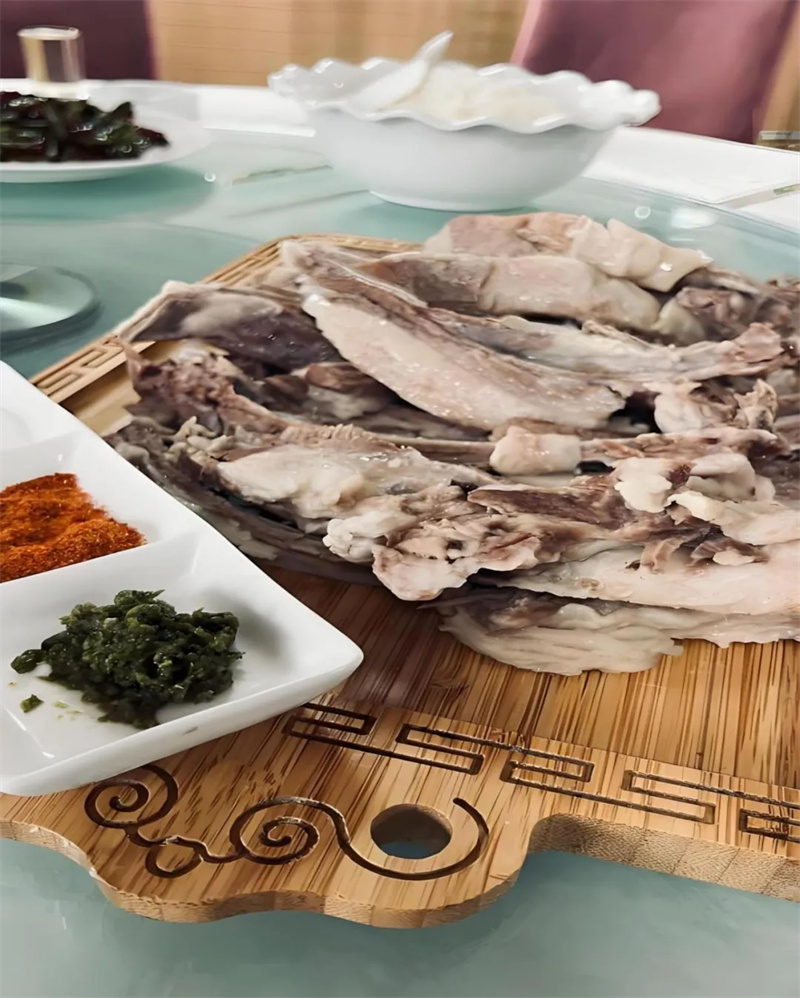全鱼宴,肉质鲜美;涮羊肉,铜锅炭火,羊肉鲜嫩;卓资熏鸡,唇齿留香;羊杂碎,汤鲜味浓,口感丰富。