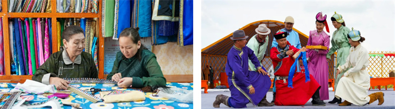 打造沉浸式非遗街区,让文化融入日常。在西乌珠穆沁旗政府所在地,西乌旗依托民族风情街高标准升级打造非遗主题街区,将其塑造为彰显草原文化魅力的城市地标。目前,街区已集聚乌珠穆沁刺绣、乌珠穆沁服饰、蒙古包营造技艺、乌珠穆沁马鞍制作技艺等非遗项目传承人12名,汇聚民族服饰店77家、绸缎店4家、帽子店2家等非遗相关经营主体,形成特色鲜明的非遗产业集群。