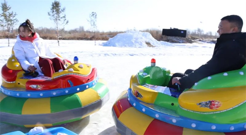 沙里河冰雪乐园依托沙里河景观区生态优势打造,开园现场热闹非凡,欢声笑语不断。乐园精心打造了雪圈冲浪、八爪鱼飞天转、雪地碰碰车、雪地摩托、雪地转转、电动冰车等多款特色冰雪娱乐项目,满足不同年龄段游客的游玩需求。雪圈冲浪让游客从坡道飞驰而下,尽享速度与激情;八爪鱼飞天转极速旋转,雪花飞溅间满是撒野的快乐;雪地碰碰车成为亲子互动的绝佳选择,碰撞间笑声与欢乐交织;骑上雪地摩托风驰电掣,解锁雪场超飒体验;雪地转转带来天旋地转的趣味,让游客在欢笑中感受冰雪魅力;电动冰车在冰面滑翔漂移,游客挥舞双臂与风相拥,沉浸式体验冰雪乐趣。