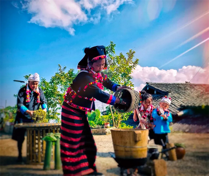 寸时雄介绍,德昂族酸茶制作技艺在2021年入选第五批国家级非物质文化遗产代表性项目;2022年11月,作为“中国传统制茶技艺及其相关习俗”子项目入选联合国教科文组织人类非物质文化遗产代表作名录。“这一文化瑰宝不仅成为民族身份的重要象征,更在乡村振兴战略下,被赋予了全新的经济价值与产业动能。如今,以酸茶+旅游为核心的融合发展模式,正在重塑我们当地产业结构,有力地带动了文旅消费升级。”