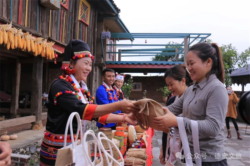数据显示,2025年1—11月,德宏州累计接待入境游客11.84万人次,同比增长8.03%,实现入境旅游花费9.35亿元,同比增长8.03%。依托酸茶旅游搭建起的“非遗手工艺品+旅游消费”桥梁,极大地带动了三台山乡出冬瓜村德昂族织锦、竹编等德昂族手工艺品产业的发展。