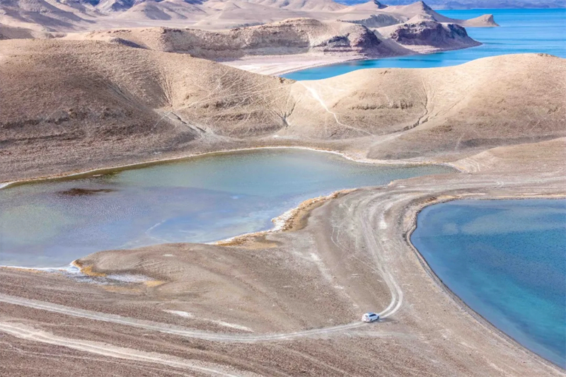 从日土县城向北驱车约20分钟,一片蓝得不像话的水域出现在路途尽头,班公湖到了。