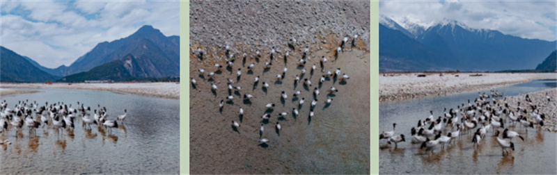 在易贡湖畔,越来越多的黑颈鹤来此栖息;在嘎瓦龙景区,绿绒蒿、报春花等植物肆意绽放 。