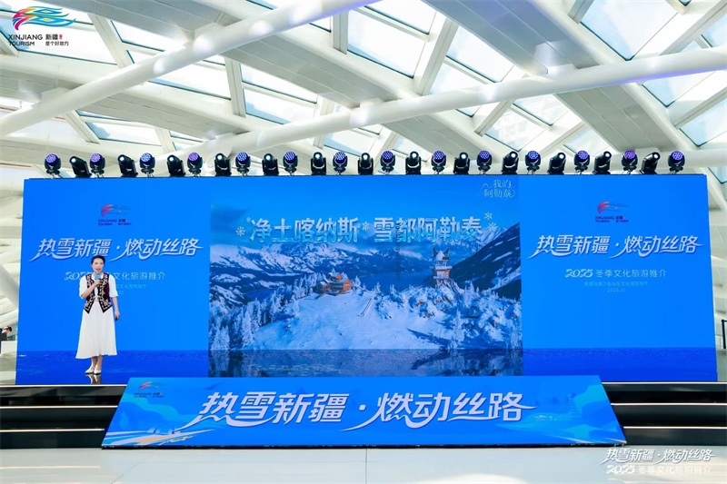 2025年10月13日,“热雪新疆·燃动丝路”2025冬季文旅推介活动在北京凤凰中心PHOENIX成功举行。新疆维吾尔自治区文化和旅游厅组织伊犁、阿勒泰、和田、克州、克拉玛依、和硕、塔什库尔干等地州县市文旅单位,携数百件特色展品与数千份情谊满满的新疆特色礼品来到北京,为首都市民带来了极具吸引力的冰雪文化盛宴。本次活动通过沉浸式推介、产业洽谈、主题摄影展及文旅市集等多元形式,全面展示新疆冬季旅游资源,推动新疆与北京文旅产业深度合作,为跨区域冬季旅游市场注入新活力。