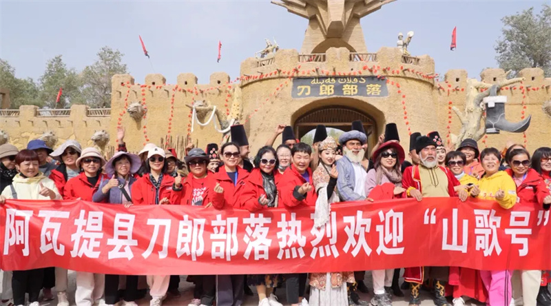10月8日,这场文化追寻迎来高潮——“山歌号”专列载着数百名刀迷直达阿瓦提。在县文旅部门向导的带领下,刀迷们开启沉浸式体验,观赏国家级非物质文化遗产刀郎木卡姆表演,艺人高亢的唱腔与粗犷的伴奏直击心灵;在非遗展示区,刀郎麦西热甫的欢快节奏让大家忍不住加入起舞。