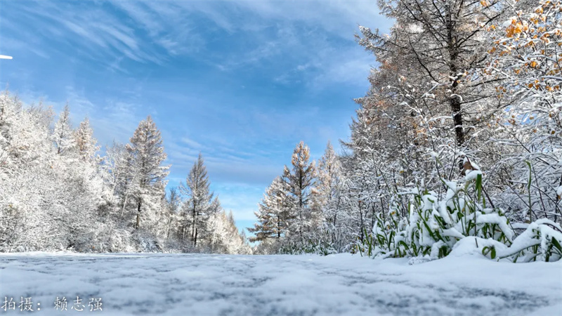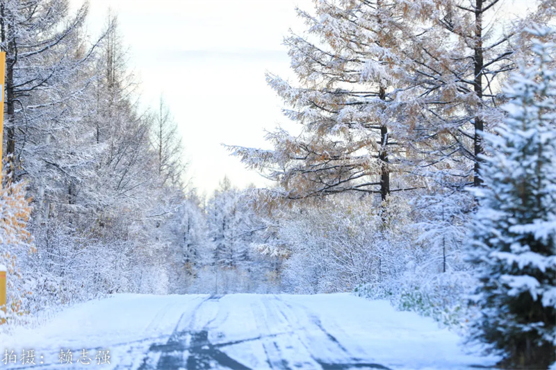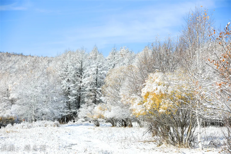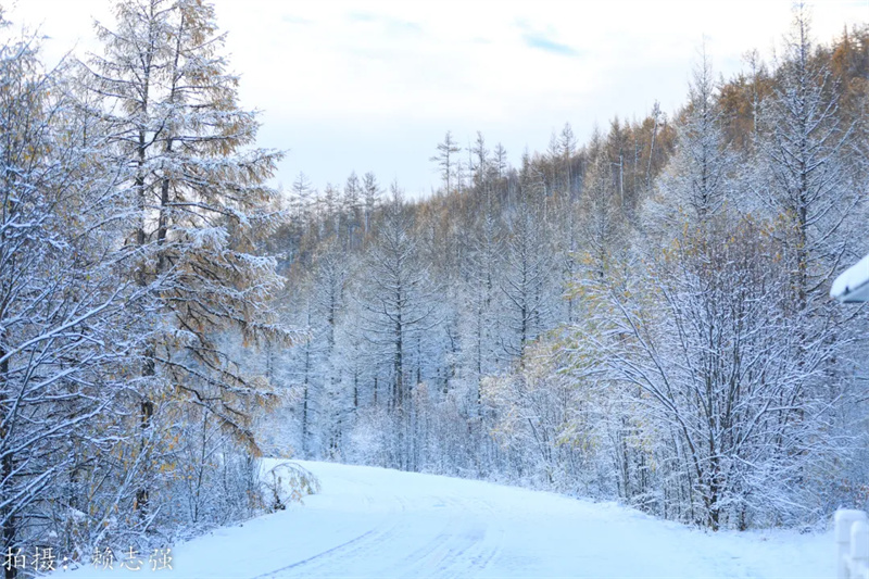 当南方的城市还在朋友圈热热闹闹晒着“美拉德”秋色,沉醉在浓郁秋意里时,阿尔山已凭借这场猝不及防的初雪,提前拉开了北国童话的华丽序幕。这雪就像一位不速之客,带着满满的惊喜与浪漫,毫无预兆地闯入我们的视野。它让金秋的阿尔山,又多了一份独有的、令人心醉神迷的浪漫气息。