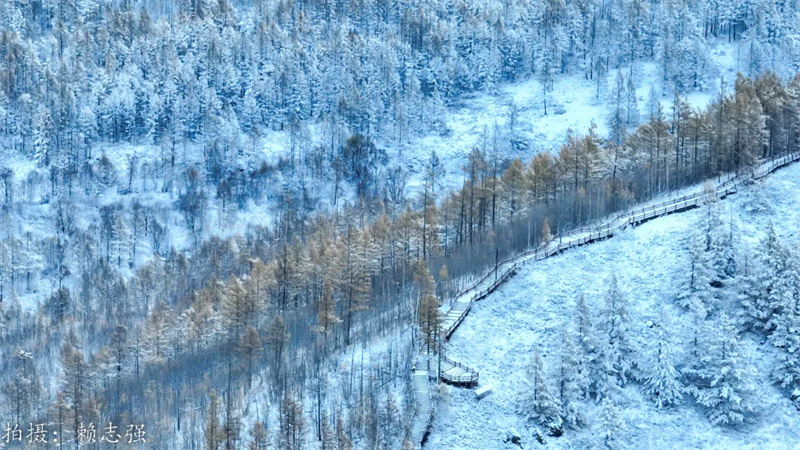 10月14日,阿尔山2025年秋日的初雪降临。如梦似幻,这哪是一场简单的降雪,分明是大自然精心为我们编织的一场梦幻童话!