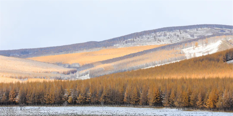 “一雪惊秋,撞出双倍惊艳”,用这句话来形容阿尔山的初雪,再贴切不过了。阿尔山的初雪,从来都不是冬日单调的象征。就在前一天,这里还满是秋的鲜活与热烈。你看那漫山遍野的林木,像是被大自然打翻了调色盘,晕着鎏金与焦糖的暖色调,每一片叶子都仿佛在诉说着秋天的故事,漫山都是沉甸甸的秋意,让人沉醉其中,无法自拔。