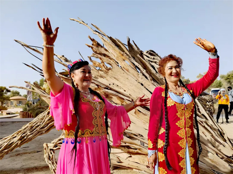 与此同时,面向广大游客和摄影爱好者的“寻找胡杨林超级游客”摄影大赛同步启动,鼓励人们用镜头记录下眼中最美的胡杨瞬间。在胡杨林深处,“天生嚣张”青春创意市集汇聚了各类非遗手作、胡杨主题文创产品和特色风味小吃。游客刘惠对一件胡杨木雕刻的骆驼爱不释手:“这些文创产品既有浓郁的地方特色,又充满了设计感,是带给亲友的绝佳伴手礼。”
