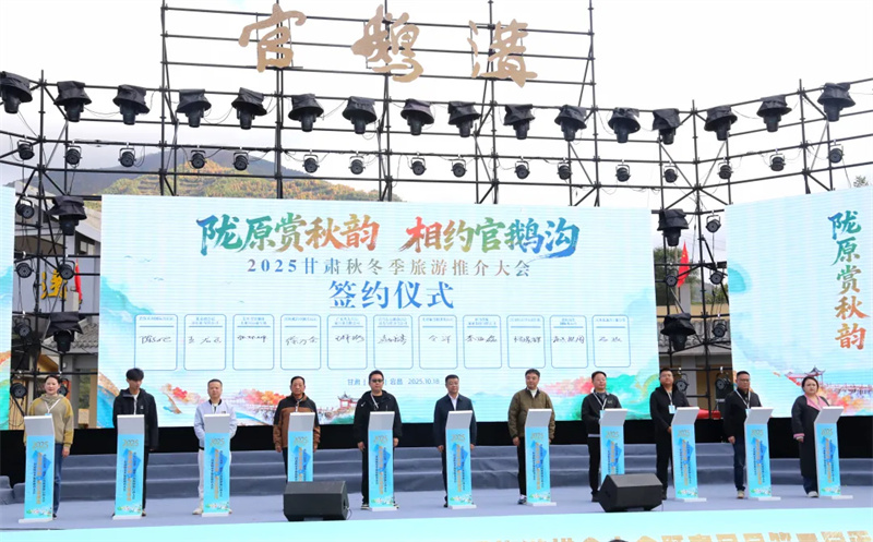 活动现场,与会领导共同启动了推介大会,宕昌县推介并发布了秋冬季旅游优惠政策,携程发布了《2025甘肃省秋冬季文旅市场洞察及甄选秋冬旅游线路产品》,官鹅沟旅游公司、各县区旅行社与996家省内外旅行商签署了合作协议。
