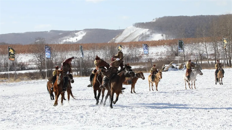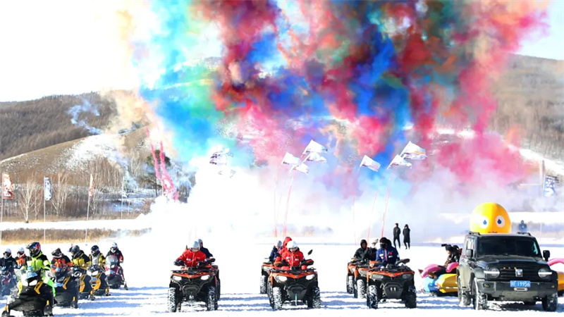在阿尔山森林牧场,冰雪那达慕同步开幕,为来自五湖四海的游客献上一场兼具视觉震撼与深度体验的冬日盛宴。蒙古族歌舞表演与特色方阵走秀率先点燃现场氛围,鲜艳的彩旗在骑手手中高高飘扬,震撼的马术表演上演着身轻如燕、马蹄踏雪的草原佳话,更有雪地越野、ATV摩托车不同组别的越野赛事热血开赛,引擎轰鸣与飞溅雪花交织,民族传统与冰雪狂欢融为一体,尽显林海雪原的速度与激情。来自河北省的王佳莹是第一次来阿尔山,饱含真功夫的马术表演、梦幻的驯鹿拉车,以及各类炫酷的冰雪体验项目都带给她不小的震撼——“太开心了,雪地爬犁坐了好几圈也坐不够,当地的朋友都很热情,我们玩得非常‘嗨’,真的推荐更多的朋友来阿尔山感受一下这里的冰雪魅力!”阿尔山冰雪那达慕不仅延续了传统那达慕的文化内核,更以冰雪为媒拓展了生态旅游内涵,让民族风情与冰雪运动碰撞出新火花,为冬季旅游提质升温注入新鲜活力。