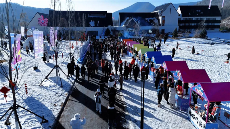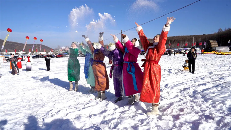 活动现场,身着民族服饰的姑娘小伙踏着欢快的节拍,歌舞飞扬,呼麦、马头琴等非遗表演让外地游客直呼过瘾。聚焦阿尔山本地风味食材,熬煮奶茶、杀猪菜、小鸡炖蘑菇等特色美食悉数亮相,地道的奶食品琳琅满目,“舌尖上的阿尔山”既暖身又暖心,轻而易举地俘获了各地食客的芳心,让浓浓的烟火气与冰雪的纯净相映成趣。会场还设置了雪花剪纸、白狼林俗树皮画、非遗冰雪画教学等多种冰雪主题互动体验项目,让饱含当地文化符号的非遗可观可触可感,为广大游客奉上了一道丰富的冰雪文化大餐。整座希望小镇化身冰雪大联欢现场:歌舞表演嗨翻全场,美食美景让人目不暇接,“泉雪嗨啤·情暖中俄”中俄温泉啤酒派对热情高涨……一场关于冰雪、关于文化、关于各民族守望相助、团结发展的奋进协奏曲奏响在祖国北疆大地。来自北京的游客邓小晴特地赶来参加本次冰雪节,她兴奋地表示:“阿尔山的雪景非常梦幻,每天起床一拉开窗帘,就看到日出和雪景,很震撼,冰雪体验项目也很丰富,这趟阿尔山之旅真的太治愈了!”