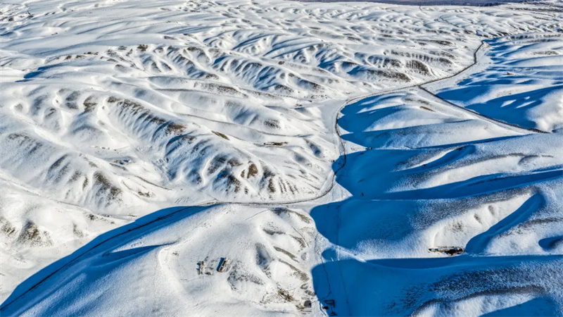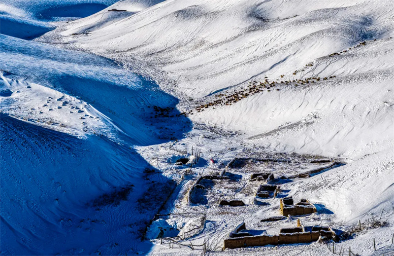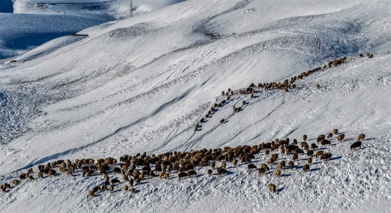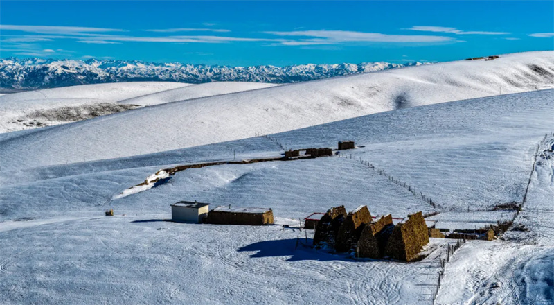 新源融媒讯(记者 阿依肯·吾龙别克 南建军 报道)当寒风卷着第一片雪掠过加吾尔山的山脊,整座山脉便缓缓沉入一片素白的静谧。雪是这里的冬日信使,以最慷慨的姿态覆盖了沟壑与草场。山坳深处,几座低矮的冬窝子藏在雪幕里,像盖了床蓬松的白毡。 牛羊是雪地的精灵。成群的绵羊披着蓬松的绒毛,在雪地上缓缓挪动,像是散落的云朵,偶尔低头啃食被雪半掩的枯草,嘴边呼出的白气在空气中凝成短暂的雾团,奏响了冬日草原的牧歌。