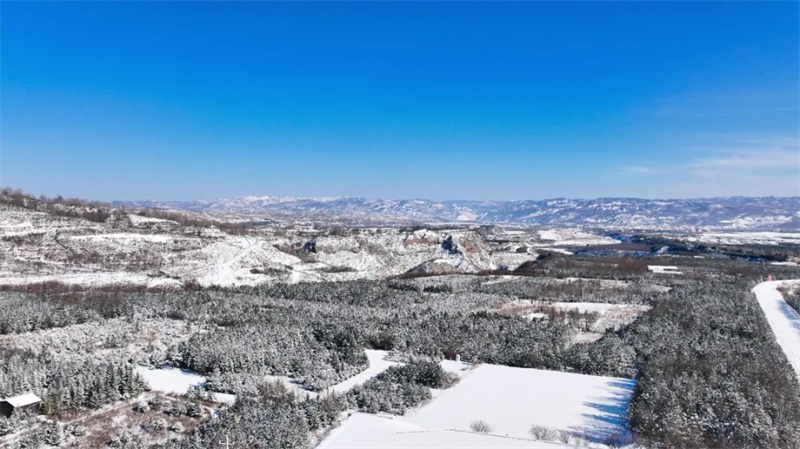 雪后初霁的六盘山脉,褪去了飞雪的朦胧,在暖阳下尽显“山舞银蛇,原驰蜡象”的雄浑意境。