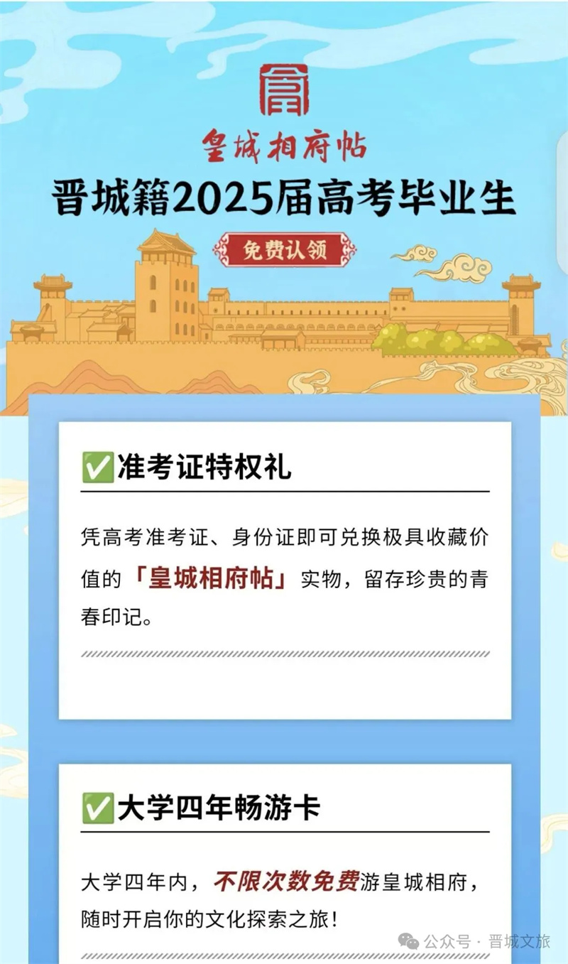 对晋城学子而言,它不只是家乡地标,更是连接过去与未来的文化纽带。寒假持帖重游,在青砖黛瓦间重拾青春记忆;开学携赠票与同窗同游,让更多人读懂晋城的厚重与精彩。