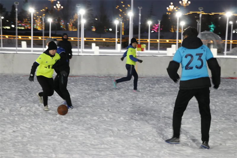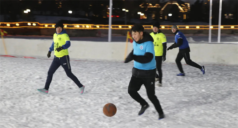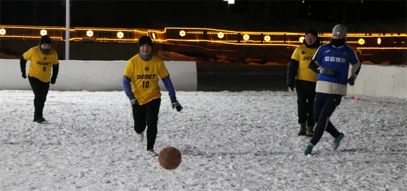 联赛首日,尽管户外气温零下二十摄氏度,但运动员们的热情却丝毫未减。球员们身着色彩鲜艳的队服,在雪地上奔跑、拼抢、传球、射门,溅起阵阵雪雾。虽然防寒装备厚重、脚下时常打滑,但他们依然凭借娴熟的技术和默契地配合,在雪场中展现出顽强的竞技精神。