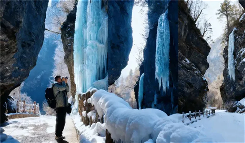 这不是普通的峡谷,是遗落人间的冰雪童话秘境。从兰州自驾3.5小时,一头扎进官鹅沟的怀抱。别错过景区观光车穿行通天峡的瞬间:悬崖上垂挂的冰挂,是大自然亲手雕琢的水晶帘,阳光洒下时,碎钻般的光点在冰面跳跃;奔赴官鹅天瀑,看凝固的冰瀑与未眠的流水共生,感受冰瀑与流水交织的灵动;与鹅嫚沟的湖泊群赴约——冬日湖面倒映雪山,随手拍出静谧大片。