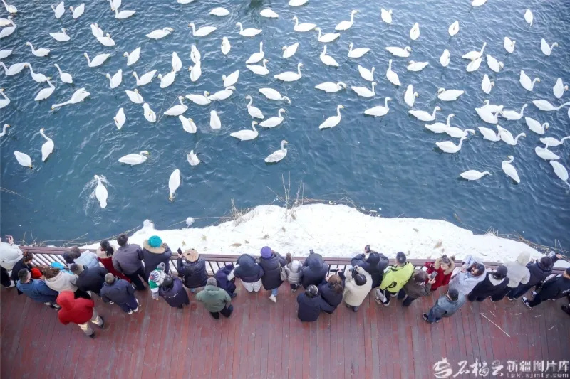 2月21日,游客在玛纳斯国家湿地公园观赏天鹅。杨斌摄