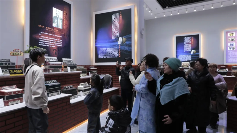 春节期间,在塔城市手风琴文化展示厅里参观的游客。塔城地区融媒体中心记者热瓦·阿克苏瓦提摄