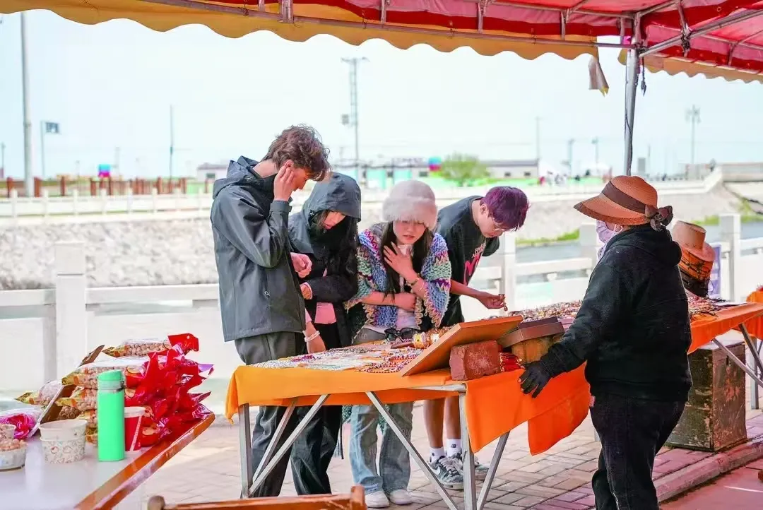 河岸上,乡里统一规划建设的12个木质售货亭沿河而设,低价租给村民,形成了一条小巧的“生态惠民走廊”,过去依赖捕捞为生的家庭,如今户均年收入突破3万元,真正实现了“护鱼生金”。“巡护的同时还能顺带卖些手编的祈福彩绳,一个月能挣三千多。日子踏实,心里更暖。”郭永忠由衷地说。