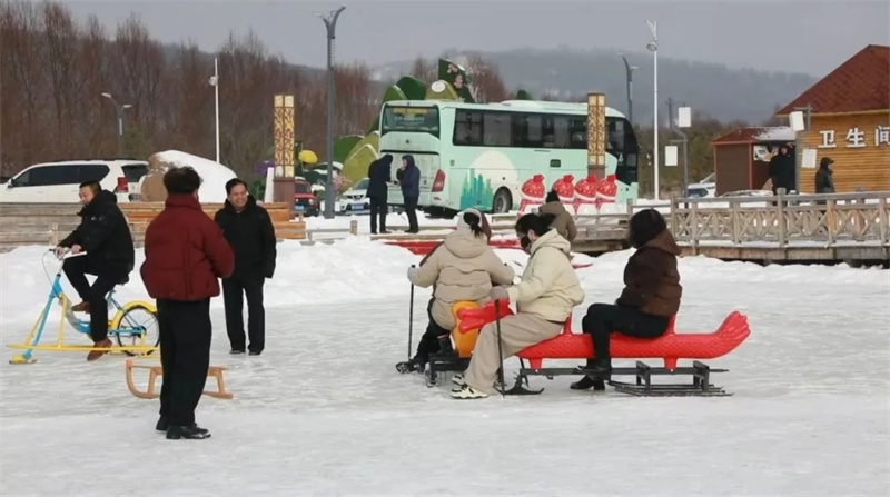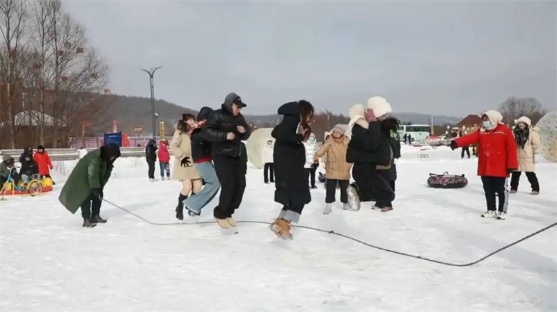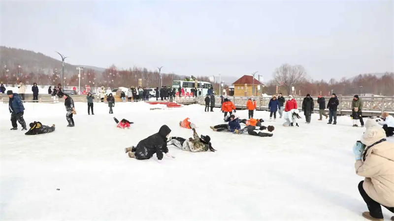 与此同时,“雪域争锋”趣味运动会全面展开,冰面拔河、雪地跳绳的呐喊声震耳欲聋,碰碰球的碰撞令人捧腹。在大众体验区,无论是驾驭雪地摩托感受风驰电掣,还是在悠波球内体验天旋地转,亦或是多人冰车、香蕉船的组团互动体验,每一位游客都能找到属于自己的冰雪乐趣。现场人头攒动,无论男女老少,脸上都洋溢着参与其中的兴奋与喜悦,构成了一幅全民乐享冰雪的活力画卷。