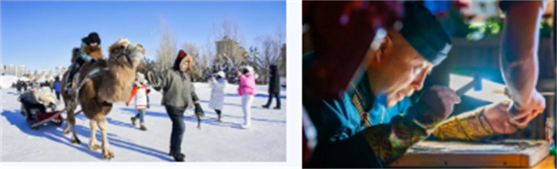 除了畅玩冰雪,领略非遗手作的独特魅力、聆听马头琴与长调交织的悠扬、感受骑马、乘骆驼雪橇的游牧风情,这些民俗体验都能让您感受到草原城市的独特韵味。