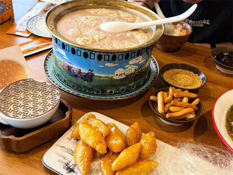 冷天的快乐,一半来自美食。蒙餐里的手把肉、羊肉肠、肚包肉冒着热气,蘸上韭菜花满口鲜香;锅茶煮得滚烫,就着奶皮、奶酪和炒米下肚,浑身都暖透了。要是想换口味,实惠可口得东北菜也能让您吃得满足不已。