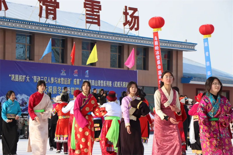 本次比赛由甘肃省冬季运动管理中心、武威市文体广电和旅游局、天祝藏族自治县人民政府主办,天祝藏族自治县文体广电和旅游局承办,乌鞘岭滑雪场协办。现场不仅精心设置了雪地拉拔牛、雪地三足跑、雪圈坐人跑等极具趣味性的游戏,还深度融合了当地民族文化,设有非遗展览、锅庄舞表演等环节。同时,经过升级的乌鞘岭国际滑雪场作为一个集滑雪、娱乐、餐饮于一体的综合性度假胜地,其常规的雪圈冲浪、雪地摩托及新增的冰上碰碰车等项目也全面开放,为游客提供了全方位的冰雪娱乐选择。