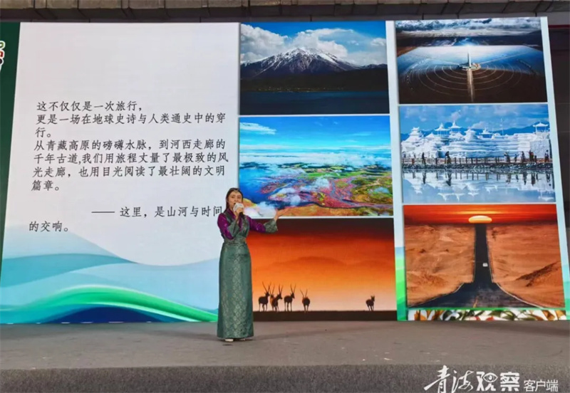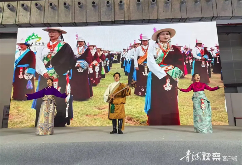 推介间隙,文艺表演轮番上阵,为活动增添别样风情。扎木念琴弹唱《吉祥如意》《在那遥远的地方》,质朴音色演绎高原天籁,讲述动人的民族故事;歌伴舞《请到大美青海来》以欢快的节奏、饱满的热情,向海内外朋友发出诚挚邀约,将现场气氛推向高潮。