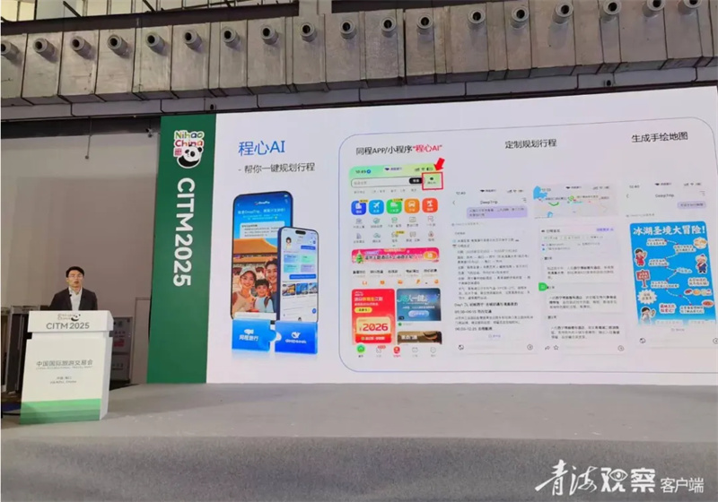 在“山宗水源 大美青海”文旅国际版宣传片播放后,推介活动进入核心环节。青海青藏国际旅行社、青海国信国际旅行社等先后登场,通过PPT展示与生动讲解,推介定制化旅游产品与精品线路——“丝路文化探秘之旅”带你穿越河西走廊东段,探访塔尔寺的酥油花艺术、瞿昙寺的明代古建筑,感受多元文明的交融共生;“冬季冰雪狂欢之旅”邀你奔赴岗什卡雪山,体验滑雪、雪地摩托等刺激项目,在海拔4000米的高原上感受“冰火两重天”的独特乐趣;青海湖景区、岗什卡雪山景区依次亮相,分别推介“高原蓝宝石”的湛蓝壮阔与雪山秘境的纯净磅礴,让现场观众心生向往;同程旅行则从科技赋能文旅的角度,分享如何通过数据与技术解锁高原深度之美,助力青海文旅市场拓展。