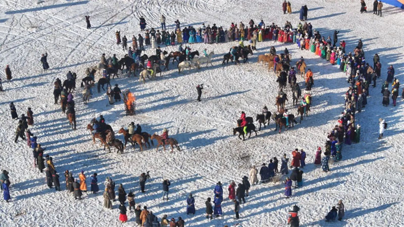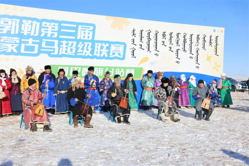 赛场之外,民俗展示和文艺演出同样热烈。阿巴嘎旗传统服饰展演亮相,首饰、长袍、腰带、靴子一应俱全。乌兰牧骑的马头琴旋律悠扬,蒙古长调高亢深远,篝火被点燃,人们围火起舞,歌舞声中传递着草原儿女的热情。阿巴嘎旗那仁宝拉格苏木萨如拉塔拉嘎查牧民额尼毕希说:“今天和传统服饰协会的朋友们一起来参加展示活动,虽然天寒地冻,但大家心都很热,能把我们的服饰和文化展示出来特别自豪。”