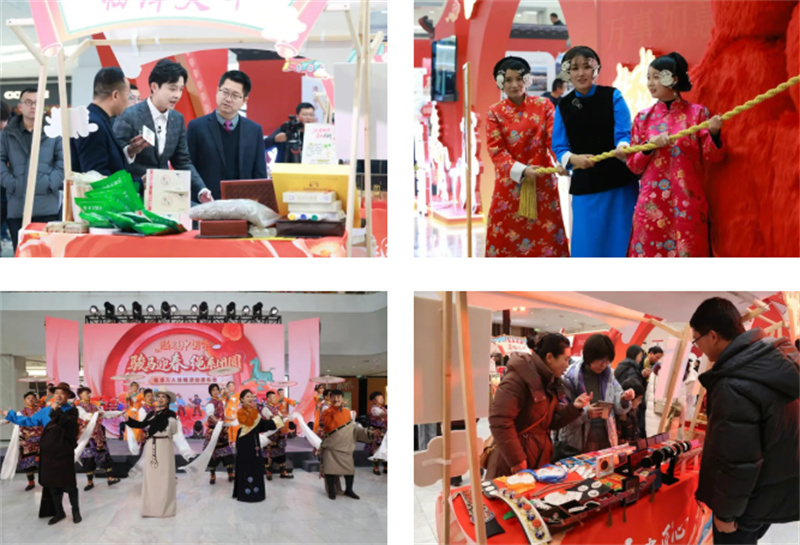 活动现场,“洮州忆韵区”“非遗匠心区”“洮商物华区”“临潭游礼区” 四大主题市集各具风情,通过统一视觉设计串联成完整游览动线。印有临潭历史建筑、万人扯绳、道地中药材、马年元素的装饰遍布全场,搭配开放式透视设计,在有限空间内最大化营造出浓厚文化氛围。各展区聚焦 “可看、可听、可触、可玩、可尝”的沉浸式体验,观众漫步其中,既能在老物件、老场景中品读洮州古韵,也能在非遗技艺展示中感受匠心传承,还能品鉴特色物产、体验民俗乐趣,全方位领略临潭的文化魅力与物产丰饶。