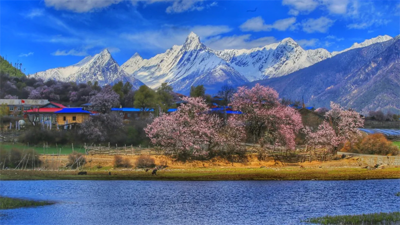 当“中国最美山峰”南迦巴瓦峰与世界最长最深的雅鲁藏布大峡谷相逢,若再有漫山野桃花装点,这般景致,美得难以想象。来米林索松村,便能邂逅春日至美。