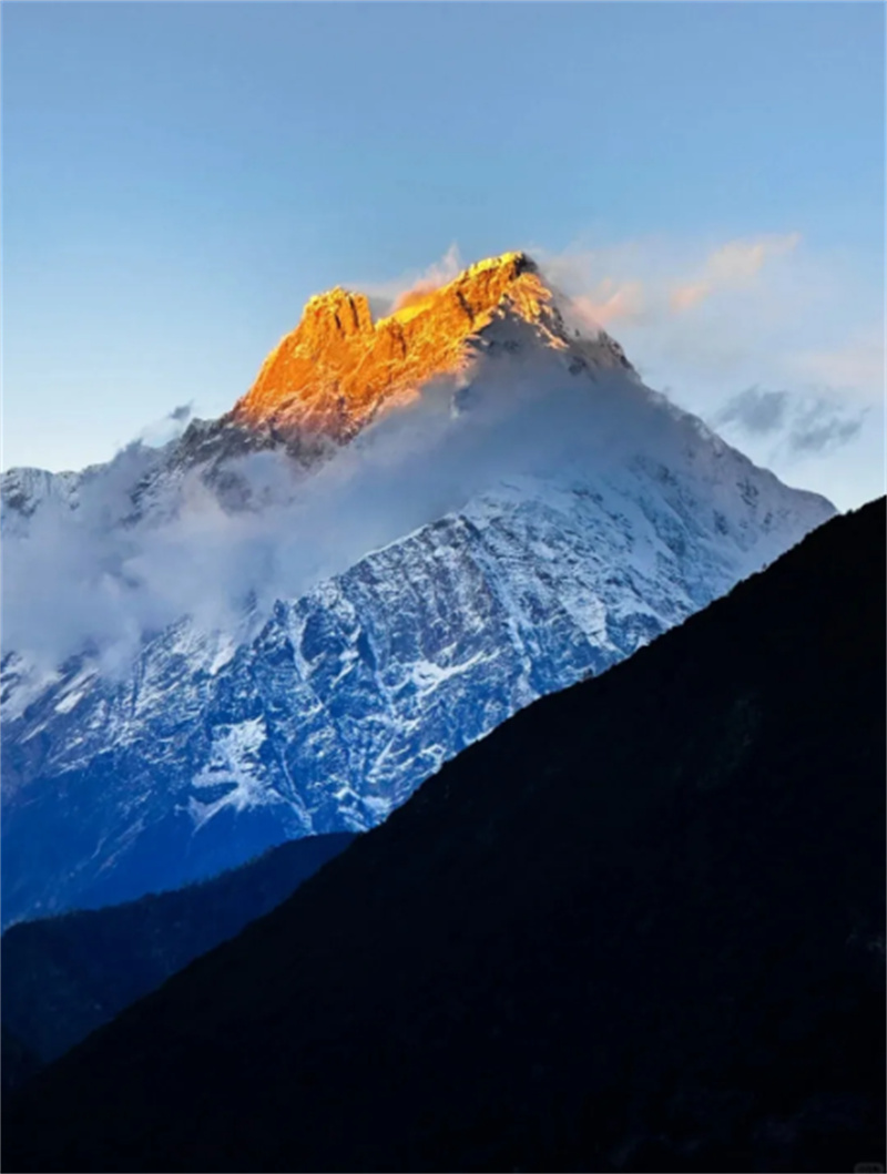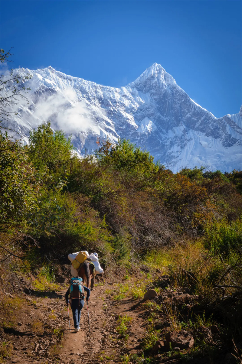秋日,处于针阔叶林混交带的南峰大本营,勾勒出南迦巴瓦峰缤纷的彩林长裙。