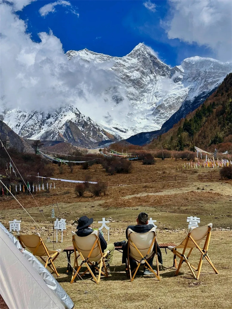 这里是雅鲁藏布大峡谷景区内,一处以轻徒步、休闲、野奢为特色的帐篷营地,当年中日联合登山队,就是从此处的一号营地开始徒步登顶的。