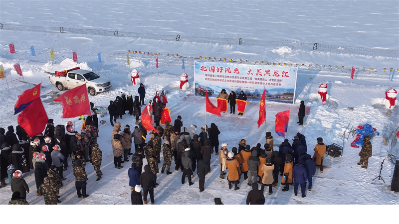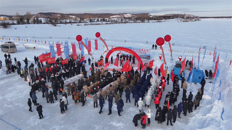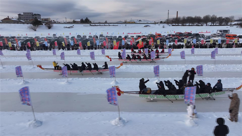 呼玛县第三届极地森林冰雪嘉年华暨第三届“醉美鹿鼎山·冰雪武侠情”武侠文化周开幕式后,“界江逐冰·燃动寒冬”中俄冰上龙舟邀请赛激情开赛。中俄两国多支代表队同台竞技,以冰为媒、以舟会友,不仅展现了呼玛县独特的冰雪资源魅力,更搭建了中俄两国体育文化交流的桥梁,共赴这场冬日冰雪盛会。