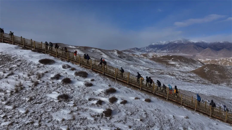 徒步爱好者 余静:冬天来乌鞘岭,风景很独特,这边有雪山、长城,我也看到了很多的历史遗迹。我觉得这边有很丰富的历史故事,还有很美很壮观的雪山风景。在徒步的过程中间,跟我们日常去其他的一些地方徒步是很不一样的,非常推荐大家就是在冬天的时候来到乌鞘岭。