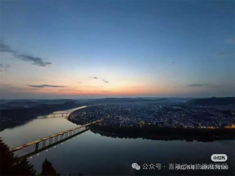 夜晚:入住树屋酒店,俯瞰嘉陵江夜景,赏夕阳西下,枕江风入眠。