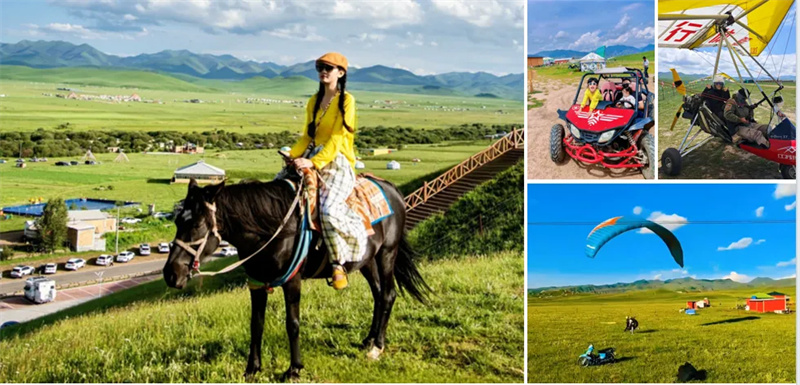 牧文旅融合新图景:盛夏的桑科草原,游客可策马徜徉于花海,在帐篷营地享受纯净空气,在藏家民宿品味美食,沉浸式体验从骑马放牧到打酥油、跳锅庄的牧民真实生活。