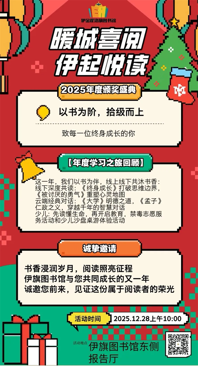 亮点:“暖城喜读 伊起悦读”2025年度颁奖盛典,致敬每一位爱读书的你。参与方式:识别二维码报名
