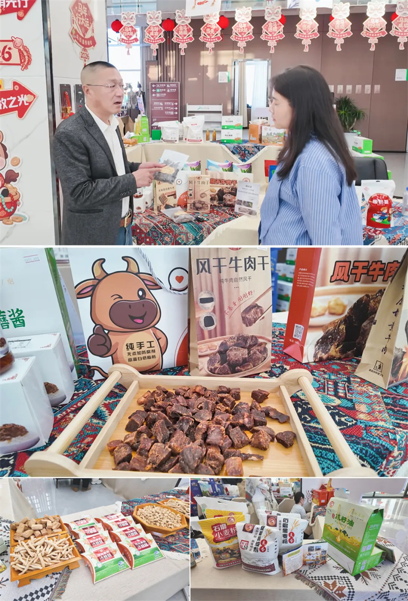 动感十足的冰雪赛事与体验项目圈粉无数,特色非遗年货集市同样人气爆棚。手工奶豆腐、牛肉干、传统毡绣饰品等草原好物琳琅满目,商户们热情地向游客介绍着自家产品。“我们的牛肉干都是风干后炭烤的,没有添加剂,好多游客尝过之后都成了回头客。”特产店老板赵志生介绍说,冰雪节不仅让游客玩得开心,更让牧民的腰包鼓了起来,在家门口就实现了增收。
