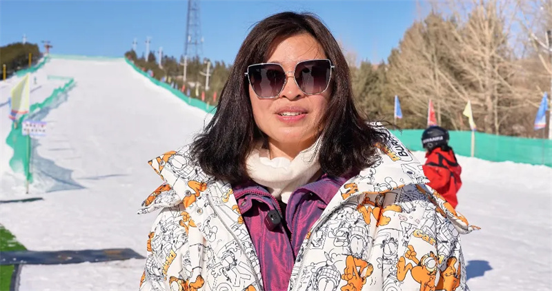 “大家好,我来自泰国,今天很高兴来到西乌珠穆沁旗,这是我第一次来这里,还有很多与雪有关的活动;你可以来滑雪,对于初学者来说,你可以来玩,都有人教你们,风景也很美”。