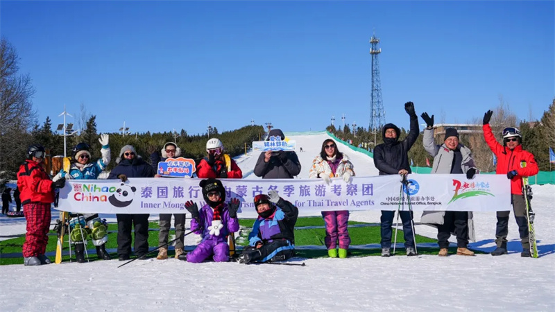 1月28日,一支泰国游客团慕名前往内蒙古西乌珠穆沁旗,开启了涵盖草原公路赏雪、滑雪体验、冰雪越野穿越等的特色行程,沉浸式领略草原的冰雪风情。